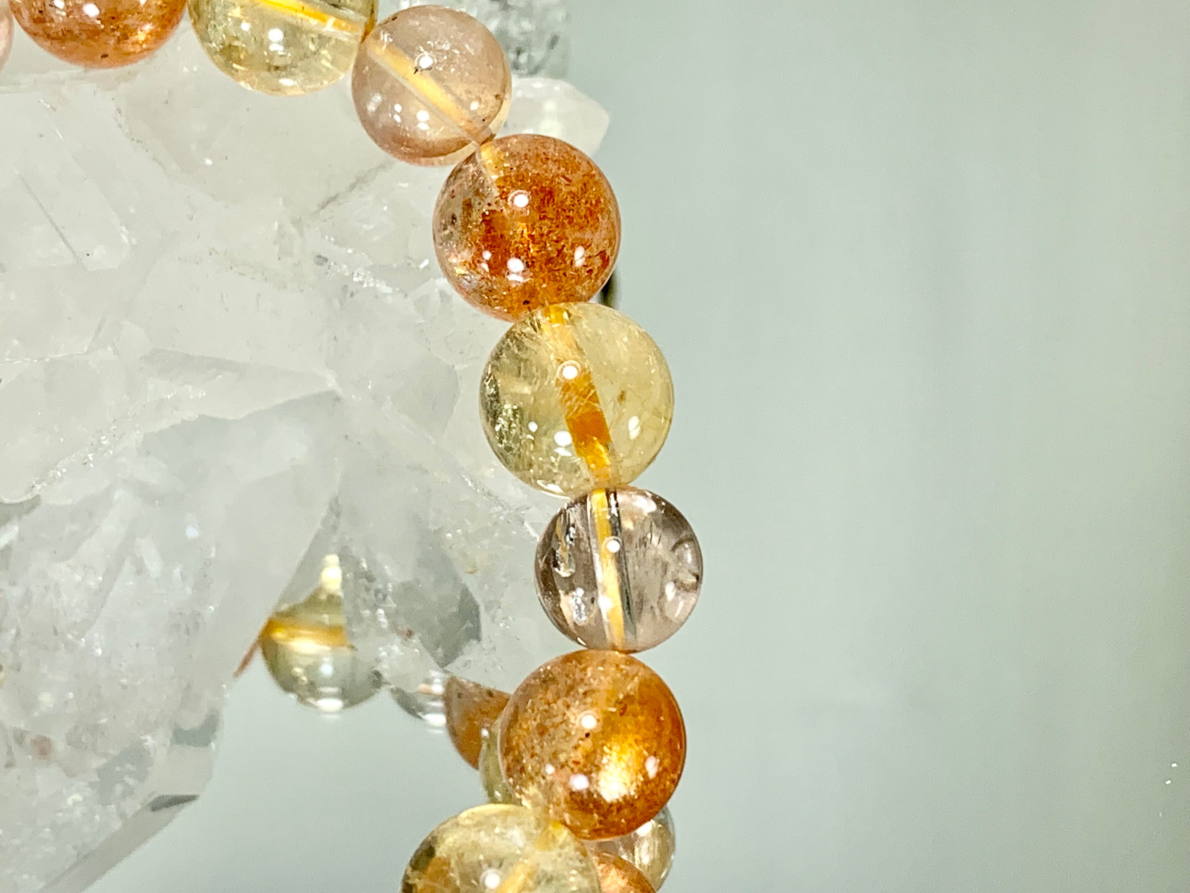 輝きの美しいサンストーンを使い、太陽の光とエナジーをイメージングした、光溢れるオリジナルブレスレット。