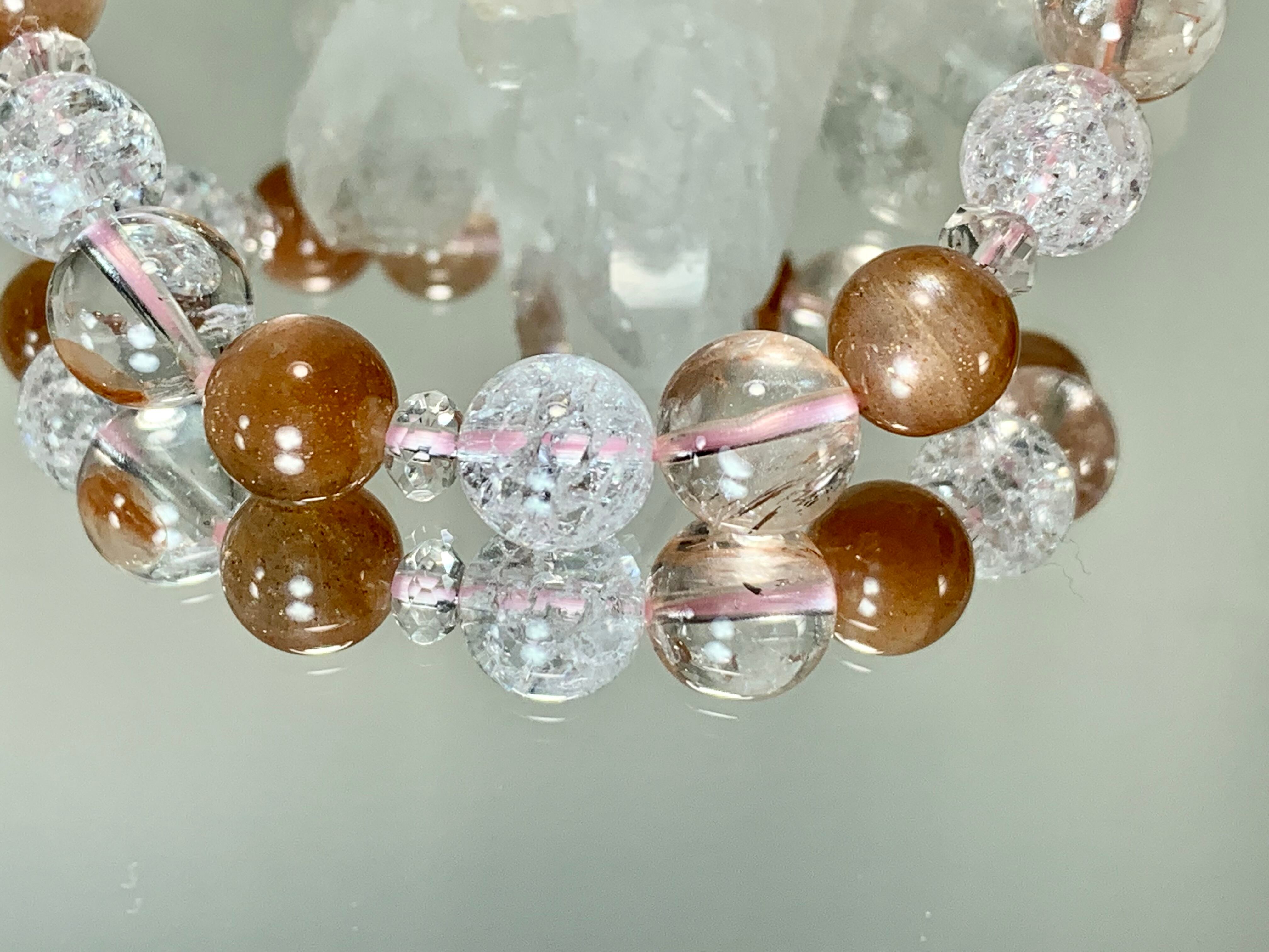 シックな色合いのサン&ムーンストーンとピンククォーツで太陽の光とエナジー、そして月蝕の月の光をイメージするような、オリジナルブレスレット。
